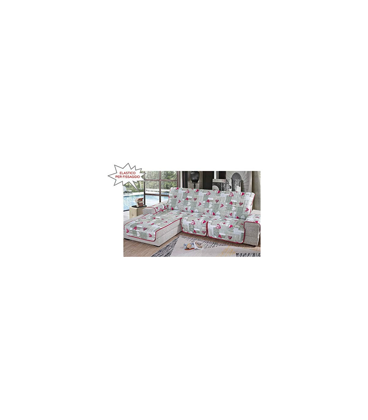KINO PLUS Copridivano con Penisola Angolare Reversibile Universale Fantasia a Cuori Trapuntato