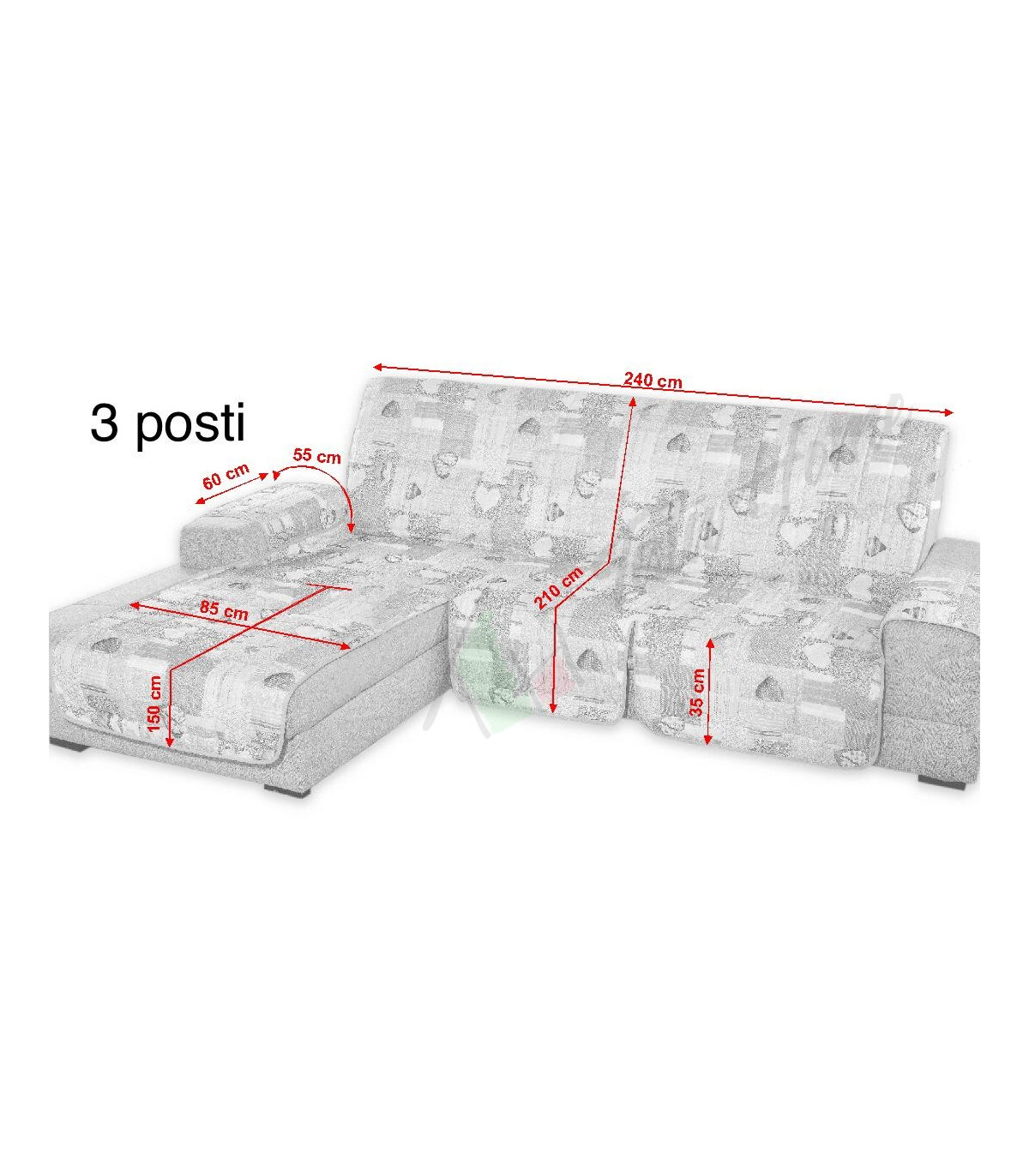 - Divano 3 posti da cm. 240 (interno bracciolo/bracciolo)X cm 210 in altezza (alzata + seduta + schienale).
