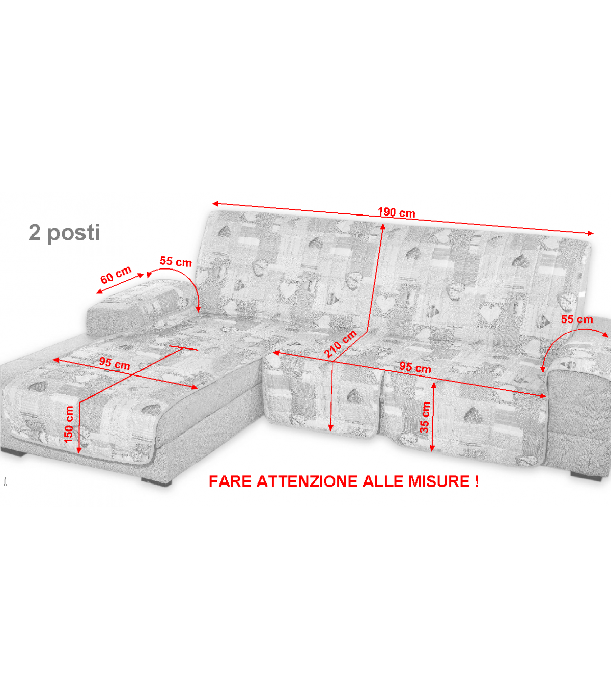 - Divano 2 posti da cm. 190 (interno bracciolo/bracciolo)X cm 210 in altezza (alzata + seduta + schienale).