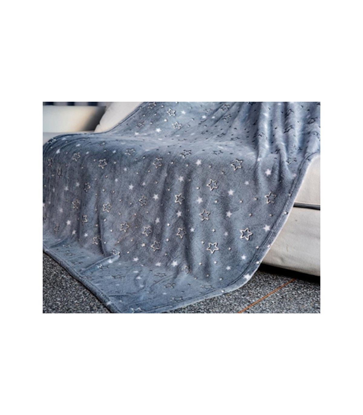 Coperta Plaid da divano che si ILLUMINA AL BUIO 3 misure Mod. Night Fluo Dis. STELLE