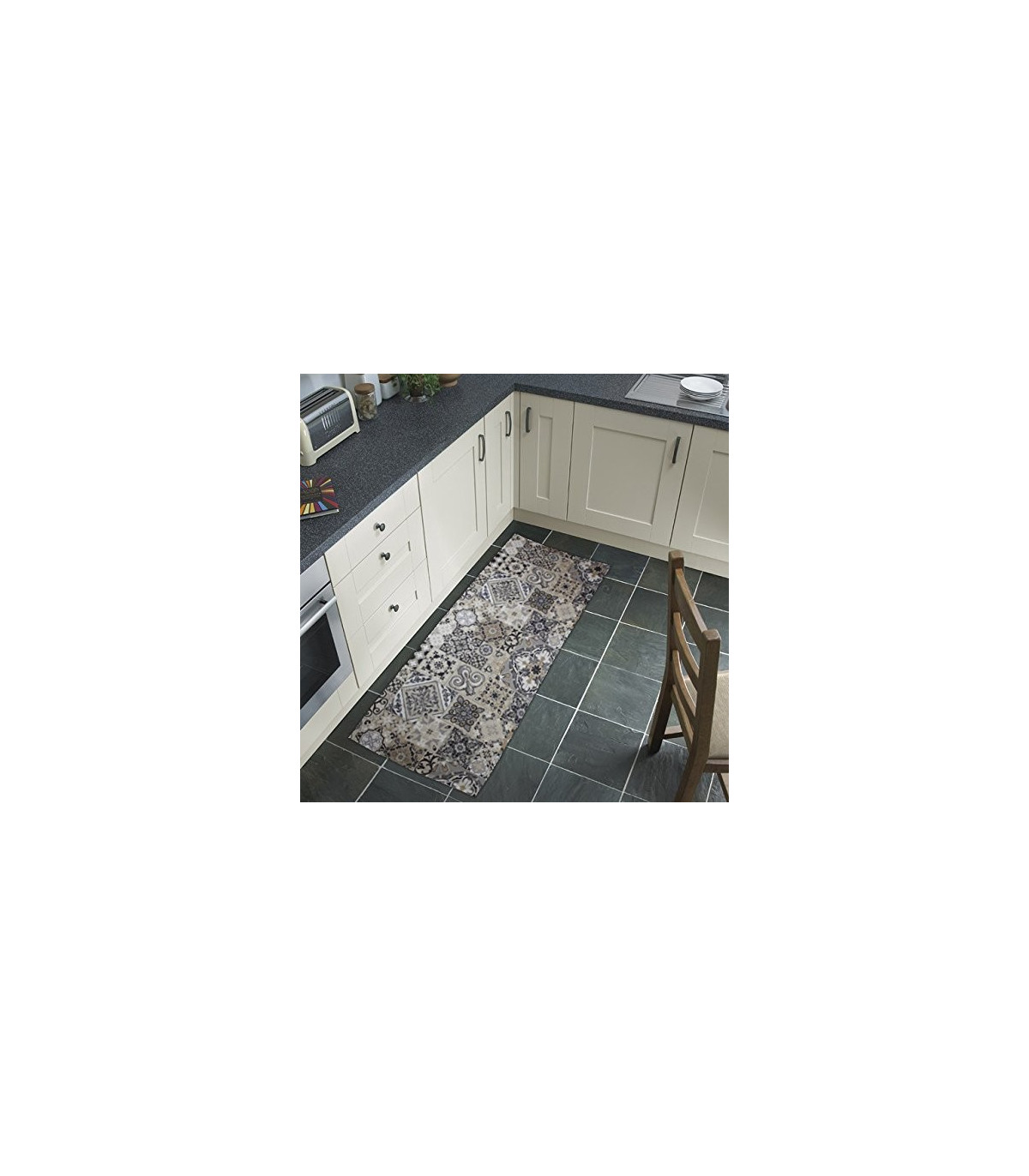 Tata Home ti propone questo nuovissimo articolo articolo, adatto come tappeto passatoia da cucina, grazie alla sua flessibilità e ai materiali che lo compongono garantisce una massima resistenza nel tempo adattandosi perfettamente ai pavimenti senza sollevarsi, creare grinze o pieghe, può essere tagliato con una semplice forbice per adattarlo ad ogni misura o forma senza il rischio che si disfi o si sfili, composto dalla parte superiore in 100% Poliestere in stampa digitale di altissima qualità mentre la parte retrostante a contatto con il pavimento in 100% morbido pvc aderente ed antiscivolo che ne garantisce la stabilità. Il lavaggio si può effettuare solo a mano ad una temperatura masssima di 30 gradi con un lavaggio delicato e senza strizzare oppure semplicemente con un aspugna inumidita. Larghezza della passatoia 52 cm; Spessore circa 4 mm. Lunghezza a scelta tra le opzioni disponibili.