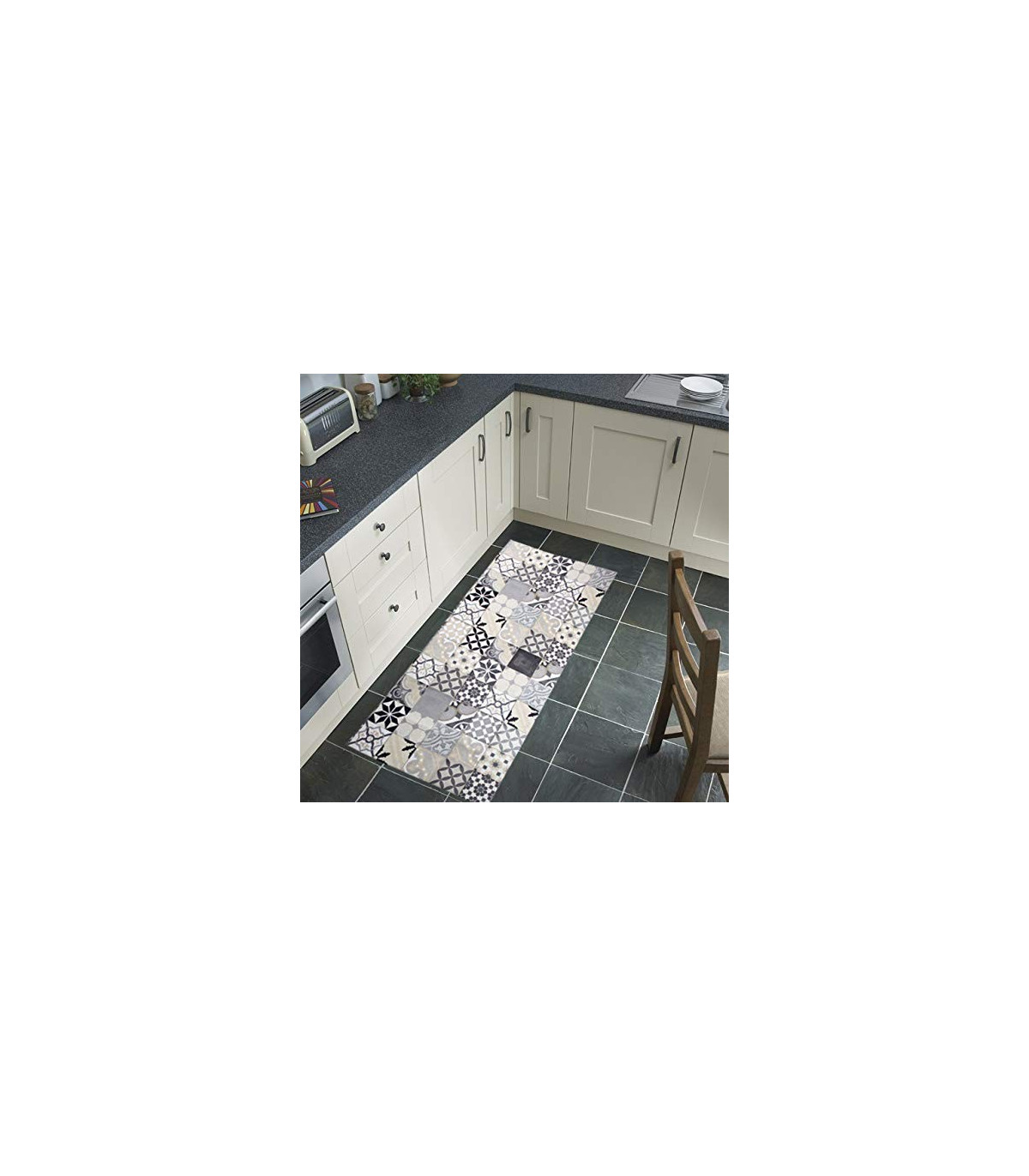 Tata Home ti propone questo nuovissimo articolo articolo, adatto come tappeto passatoia da cucina, grazie alla sua flessibilità e ai materiali che lo compongono garantisce una massima resistenza nel tempo adattandosi perfettamente ai pavimenti senza sollevarsi, creare grinze o pieghe, può essere tagliato con una semplice forbice per adattarlo ad ogni misura o forma senza il rischio che si disfi o si sfili, composto dalla parte superiore in 100% Poliestere in stampa digitale di altissima qualità mentre la parte retrostante a contatto con il pavimento in 100% morbido pvc aderente ed antiscivolo che ne garantisce la stabilità; Morbida è la sensazione al calpestio grazie al suo spessore di circa 4 mm; ha una larghezza di 52 cm ed è venduto in varie misure (anche su misura) e disegni che potrei scoprire tutti sulla nostra vetrina...è un prodotto Made IN ITALY!!!