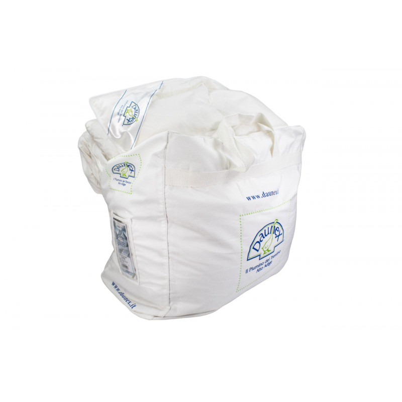 • PRODOTTO MADE IN ITALY Questo piumino invernale Top di gamma Daunex è realizzato in Italia ed è venduto in una pratica sacca salva spazio in tessuto, che permette di conservarlo al meglio a fine stagione.