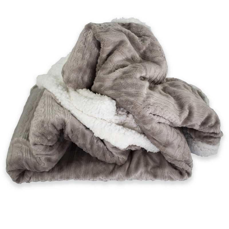 OSLO Plaid Divano in Pile da 440 gr mq con Retro Agnellato Treccia Colore Beige