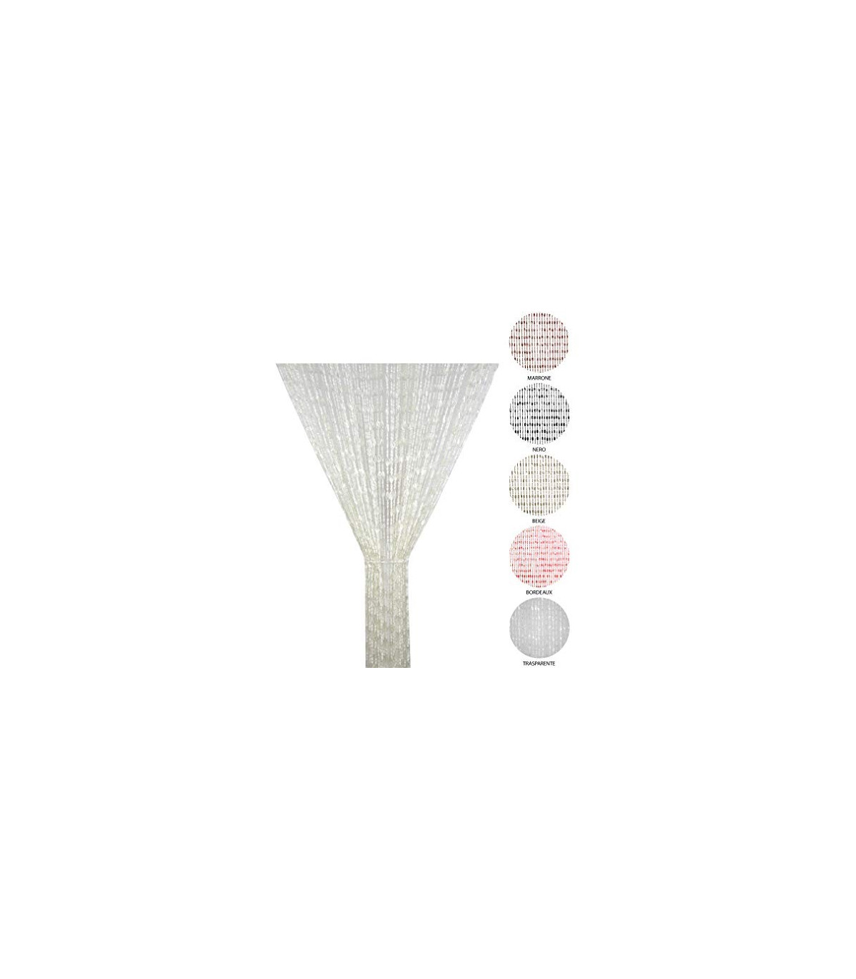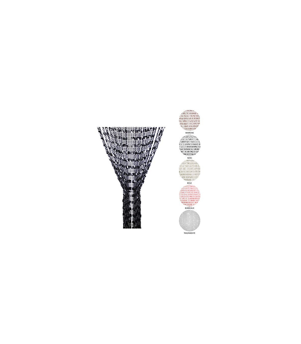 Tata Home vi propone questa Favolosa tenda a perline che risolversa i vostri problemi con mosche e insetti volanti; realizzata in PVC è disponibile in 3 diverse misure 100x220 cm - 120x220 cm - 140x230 cm. Tutte queste tende sono accorciabili semplicemente sia in lunghezza con una semplice forbice tagliando alla misura idonea le catenine, ma anche in larghezza smontando il tappo sul telaio che contiene la tenda e con un semplice seghetto tagliando in poche mosse il telaio stesso in PVC per poi riposizionare il tappo, pertanto può esser utilizzata non solo su porte ma anche su finestre. Queste Tende a frange sono disponibili in 5 diversi colori: Beige,Trasparente,Marrone,Nero e Bordeaux. La distanza tra una catenina e l'altra è di circa 1 cm. Il montaggio è semplicissimo bastano un paio di chiodi o di viti applicate sopra la vostra porta o finestra, non preoccupatevi se avrete già fissato dei supporti preesistenti perchè i due anelli per il fissaggio di questa tenda sono scorrevoli su binario quindi si adattano all'interasse dei vostri ganci. Adatta sia per interno che per esterno. NO rumorosa!!!