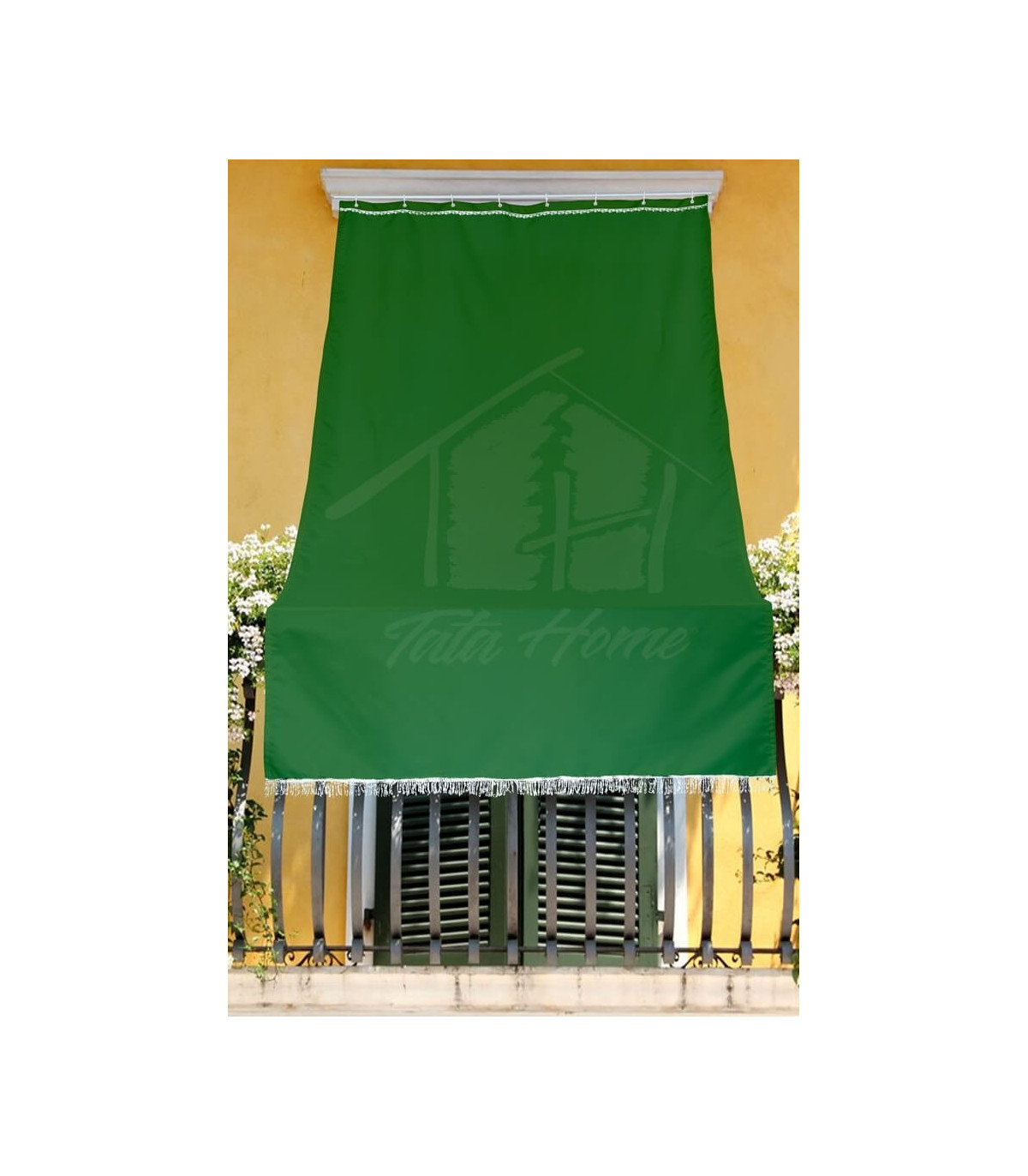 Tenda da Sole con Kit Ganci e Anelli in Tessuto Resistente da Esterno o Balcone Dis.5 Tinta Unita Colore Verde