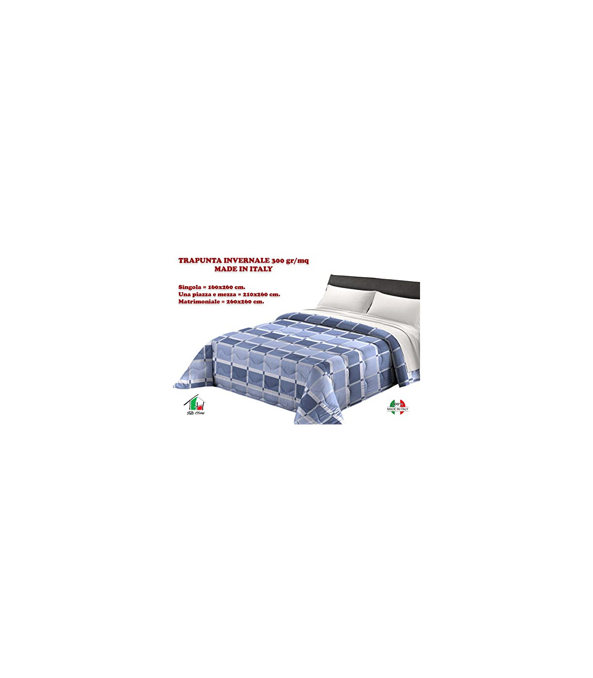 TORONTO Trapunta Invernale 300 gr/mq Fantasia Geometrica a Quadri Made in Italy Colore Azzurro Blu